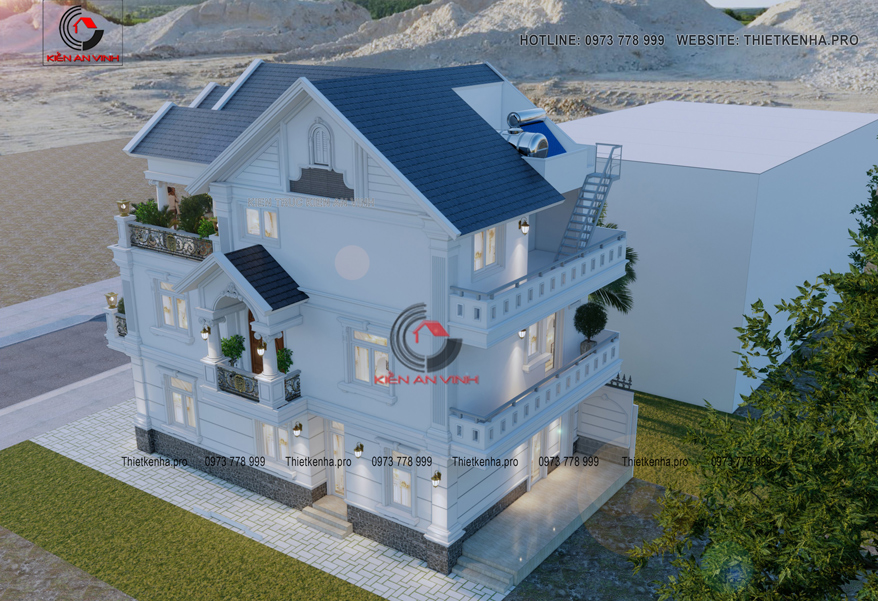 Hình ảnh phối cảnh của bản thiết kế biệt thự 3 tầng mái thái 8x12m