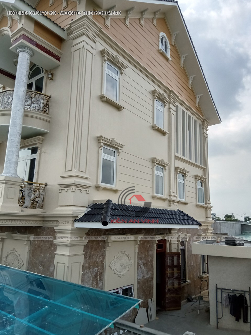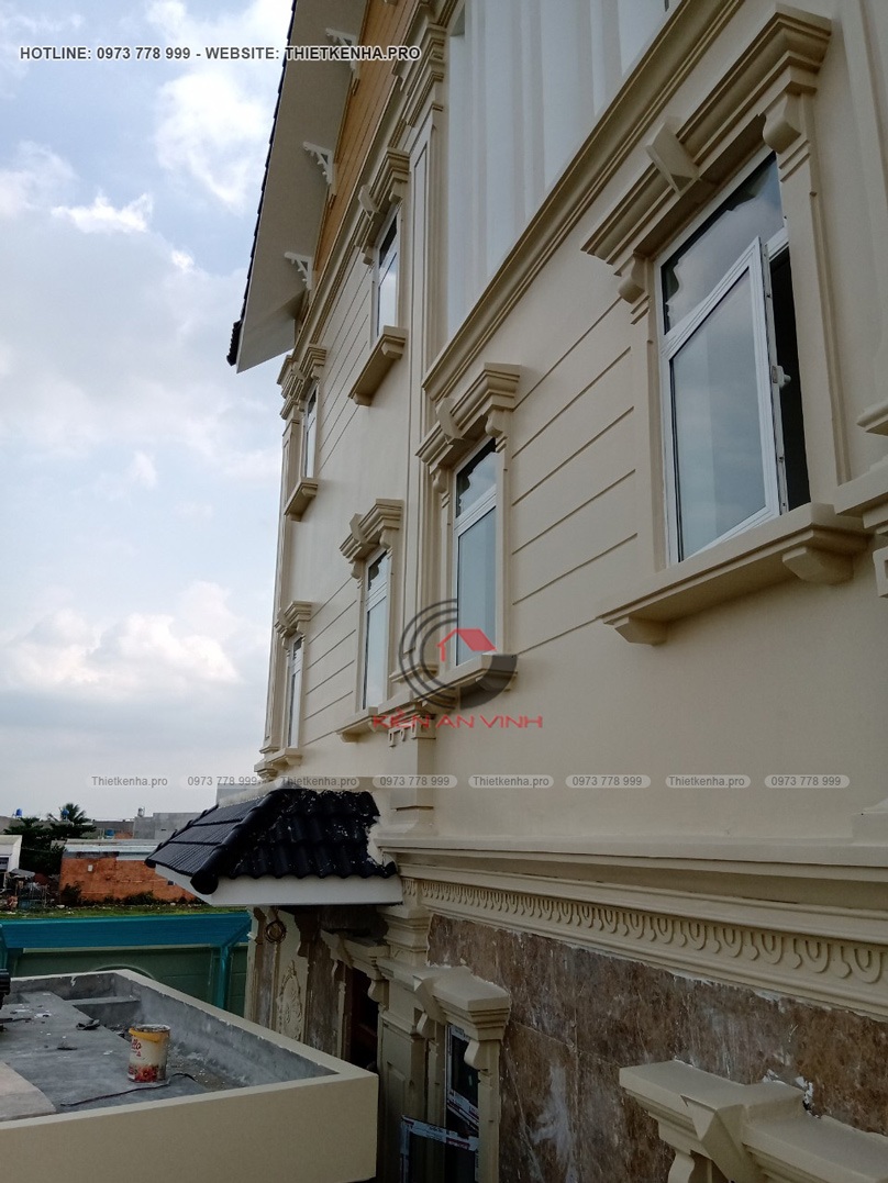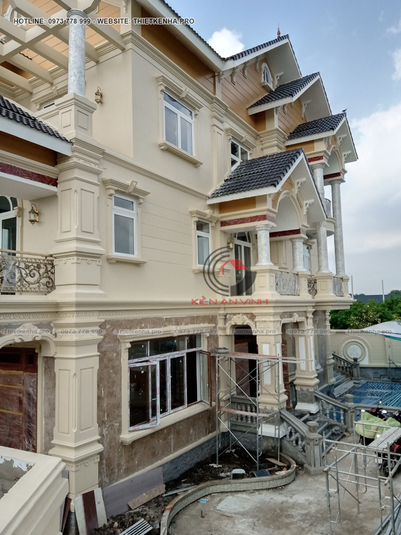 Hình ảnh thi công biệt thự 3 tầng mái thái tại Long An