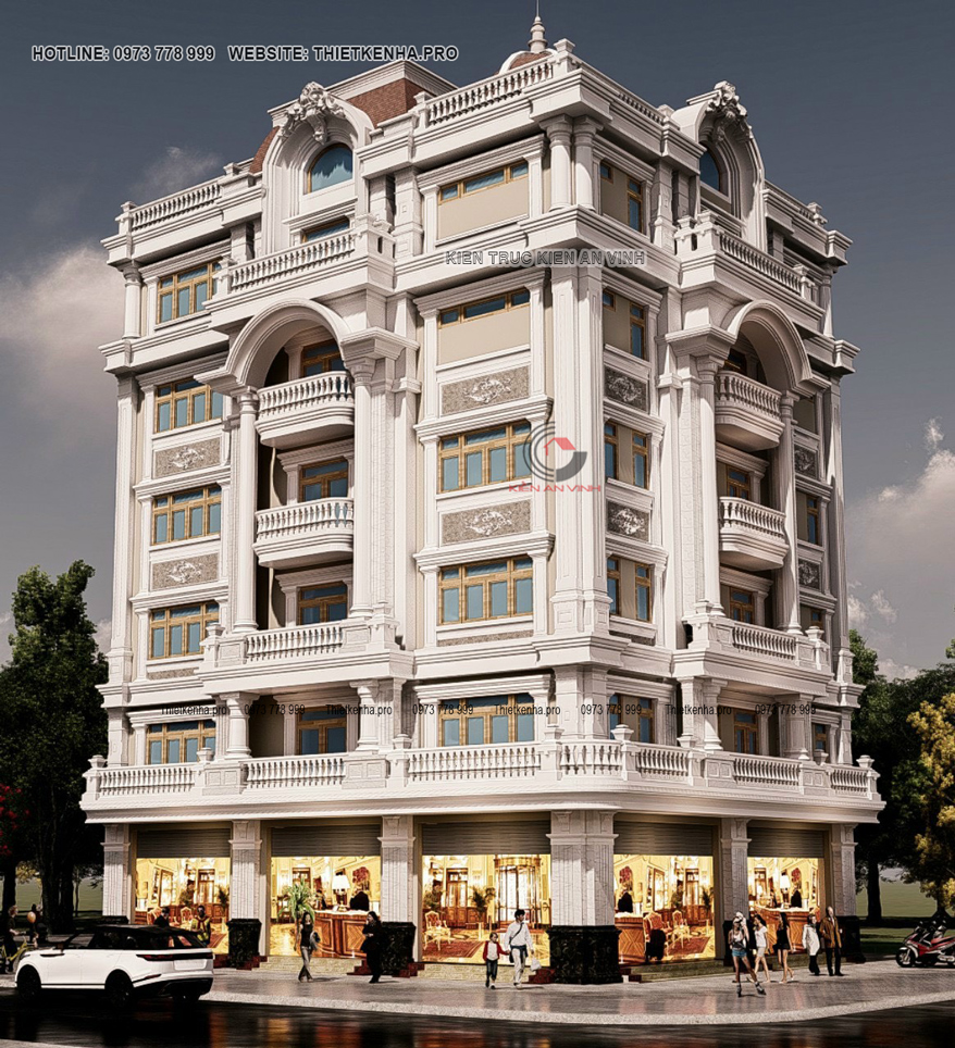 Kiến trúc với 6 tầng và 1 tầng thượng được đặt ở vị trí cao nhất. Nét đẹp đồ sộ kết hợp lối thiết kế đã giúp biệt thự luôn là tâm điểm của nhiều khách qua đường. Khu vực tầng trệt được tận dụng tối đa công suất với việc tận dụng kinh doanh. Hình khối trong quá trình thi công xây dựng được luôn được quản lí chặt chẽ từng công đoạn. Chính vì thế chất lượng công trình luôn đạt mức tuyệt đối.
