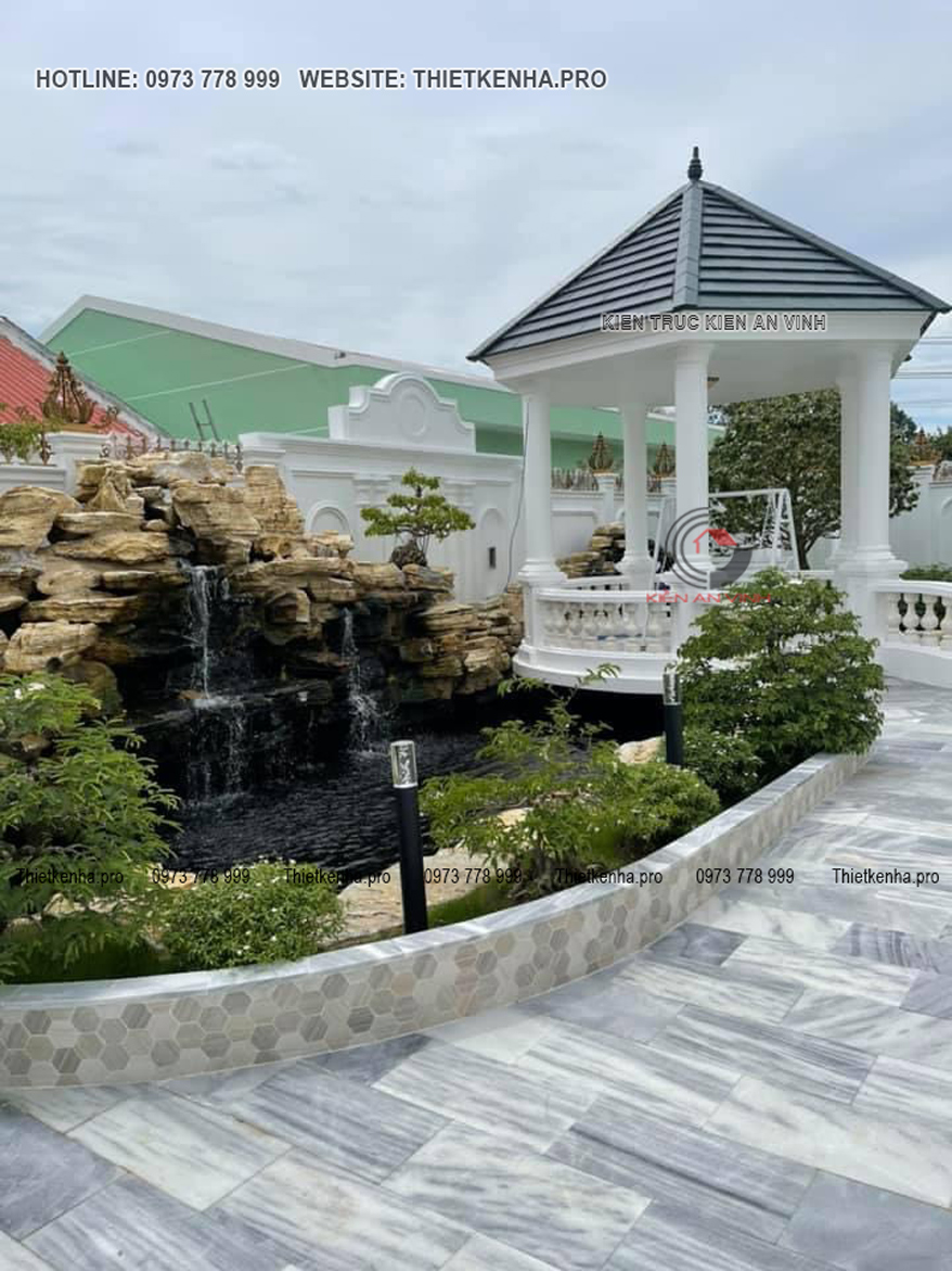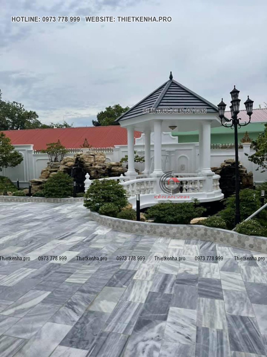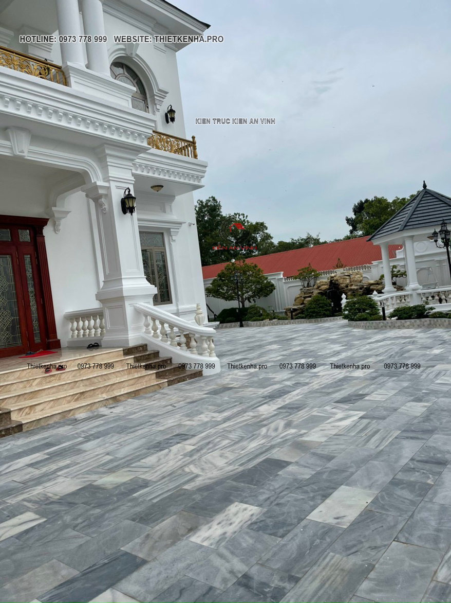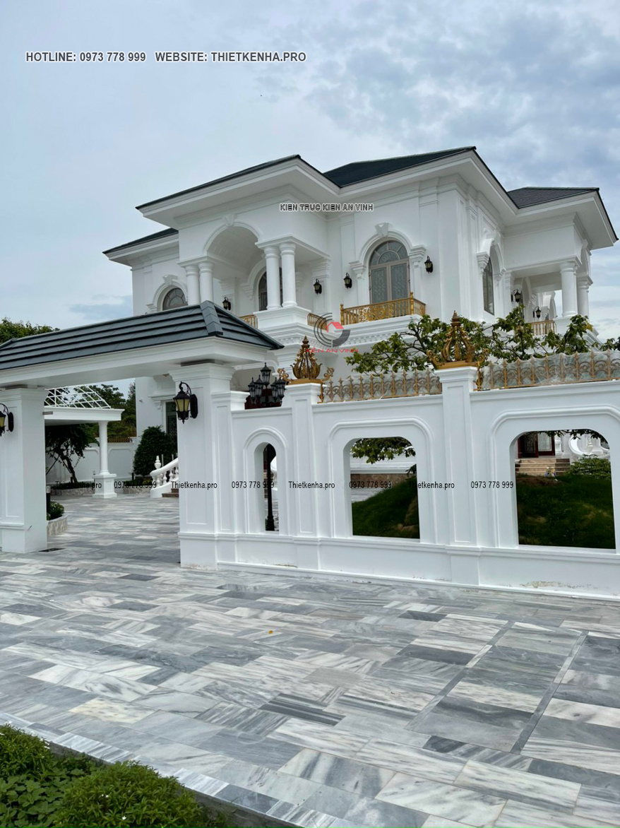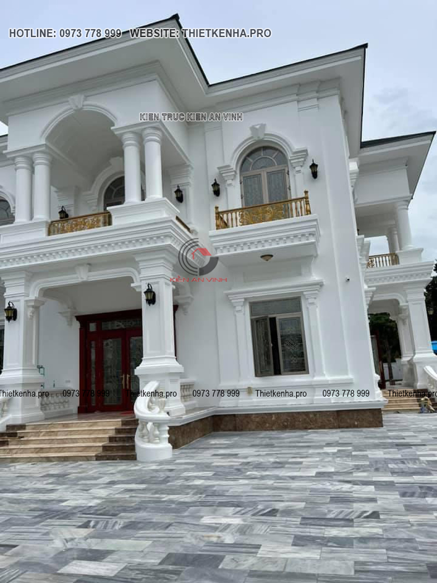 Tạo nên công trình hoàn hảo về mặt chất lượng cũng như thẩm mỹ biệt thự. Bên dưới là một số hình ảnh xây dựng biệt thự được chụp lại từ ngoại thất đến kiến trúc bên trong. Kiến trúc mái nhật cao ráo khiến biệt thự càng thêm nổi bật so với những kiến trúc lân cận. Tạo nên độ cao ráo nổi trội giúp phô trọn nét đẹp tân cổ điển.