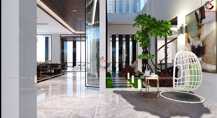 Các điểm nhấn của căn nhà nằm ở không gian mở. Tạo nút thông thoáng nhưng vẫn thể hiện được sự kín đáo cần thiết. Các cây cối được thiết kế đan xem, gần gũi thiên nhiên đẹp mắt và cũng vô cùng lạ mắt. Có thể nói, đây là một trong những mẫu biệt thự hiện đại 3 tầng đẹp mắt nhất và kiến trúc hiện đại đáng tự hào nhất.