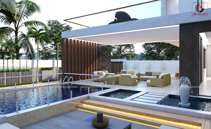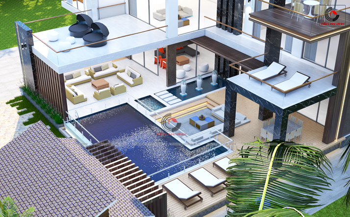 Với một lô diện tích đất khá rộng lớn, tạo nên một biệt thự 3 tầng có hồ bơi, không gian bên ngoài khá là rộng lớn. Một màu xanh của hồ bơi đã hướng cho gia đình thêm phần tươi mới. Mẫu thiết kế biệt thự đã tổng quan cho ngôi nhà rộng rãi hơn.