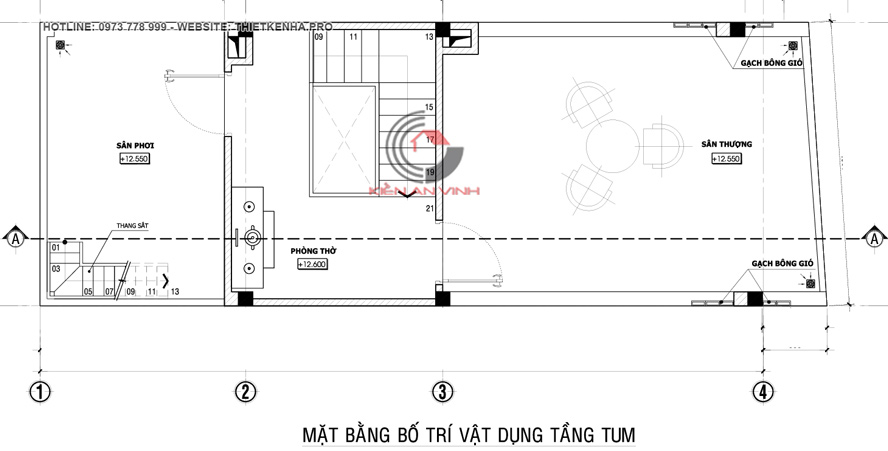 Tầng thượng: Gồm 1 phòng thờ, sân phơi và sân thượng