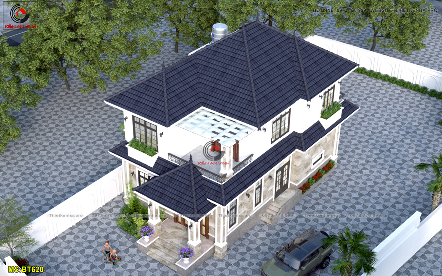 BT620 – Sở hữu lối thiết kế đơn giản nhưng vô cùng hiện đại. Hội tụ đủ các yếu tố, chi tiết phù hợp với xu hướng thời nay và về sau. Là một mẫu nhà biệt thự 2 tầng mái nhật có sân vườn, thích hợp cho gia đình có từ 2 đến 4 người. Với công năng đa dụng và nhiều tiện ích khác, phục vụ cho nhu cầu sống được nâng cao.
