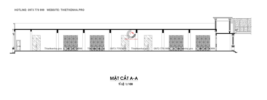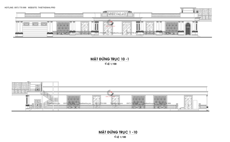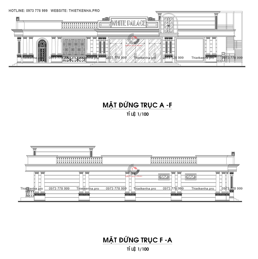 Kiến trúc mang thiết kế theo phong cách tân cổ điển. Nhưng không dùng các họa thiết hoa văn làm điểm nhấn, mà thay vào đó là những đường nét. Kết hợp với cách bố trí các chi tiết và sử dụng vật liệu hiện đại. Làm tăng hiệu ứng cho thẩm kiến trúc và tôn lên nét đẹp đặc trưng, nổi bật cho kiến trúc nhà hàng.