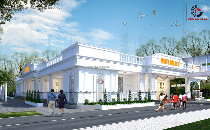Đầu tư kiến trúc ngoại thất mẫu thiết kế nhà hàng tiệc cưới đẹp