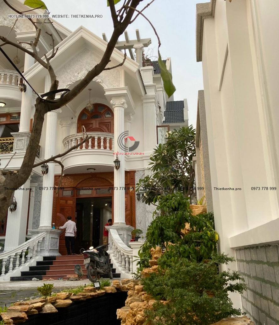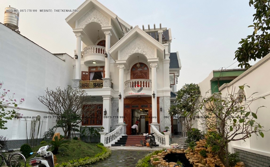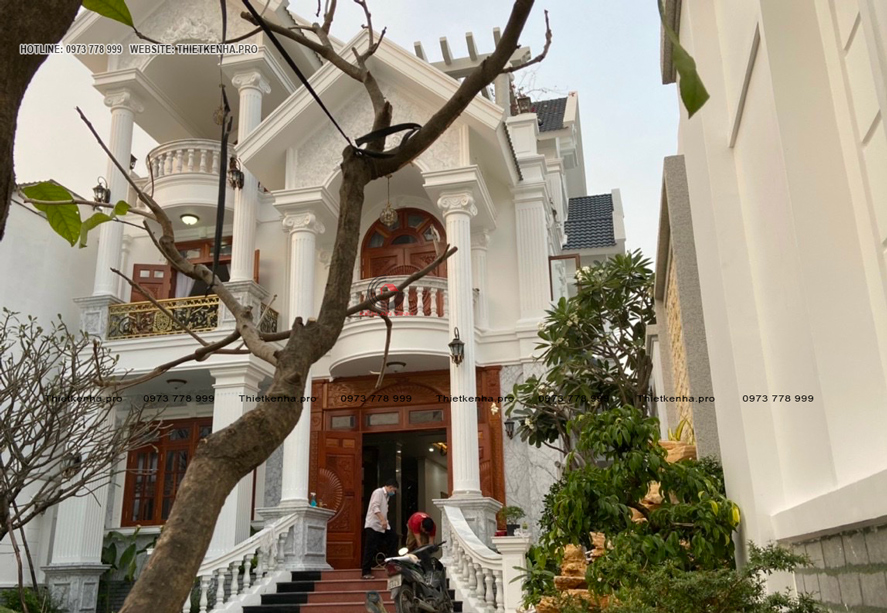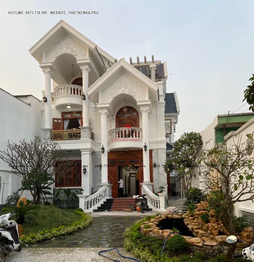 Thiết kế và thi công biệt thự 3 tầng mang kiến trúc tinh tế với sự kết hợp hài hòa giữa không gian biệt thự và sân vườn ngoài trời. Kiến trúc được xây dựng kèm theo hệ mái thái độc đáo. Phong cách mái Thái bố trí mái giật cấp tạo ra một kiến trúc nổi bật giữa những công trình lân cận khác. Tổng thể mang phong cách nhẹ nhàng, đem lại nơi thư giản, nghỉ ngơi đáng có.