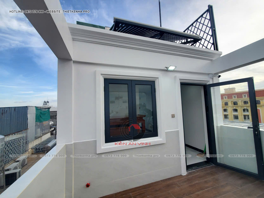 Một ưu điểm lớn khi xây dựng nhà tân cổ điển cao tầng là khả năng tối ưu không gian sống. Tầng lửng giúp tăng diện tích sử dụng tổng thể. Trong khi sân thượng là nơi thư giãn, trồng cây xanh hoặc tổ chức các buổi tiệc nhỏ quây quần cùng gia đình.