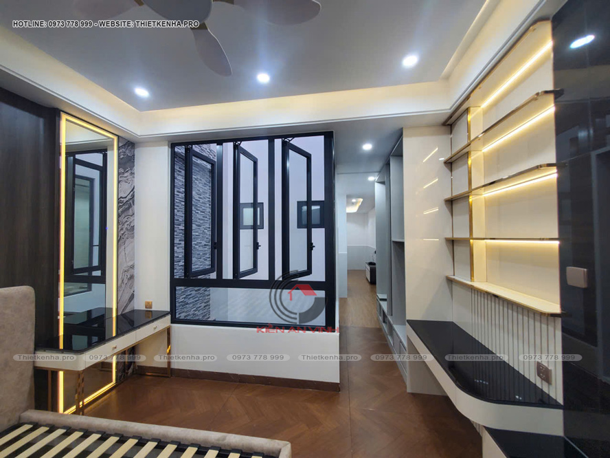 Ban công được thiết kế ở mỗi tầng không chỉ giúp lấy sáng, thông gió mà còn tạo điểm nhấn kiến trúc cho mặt tiền. Gia chủ có thể tận dụng ban công để trồng hoa, trang trí, hoặc đơn giản là nơi thư giãn riêng tư. Việc có ban công ở từng tầng giúp ngôi nhà trở nên thoáng đãng và hiện đại hơn.