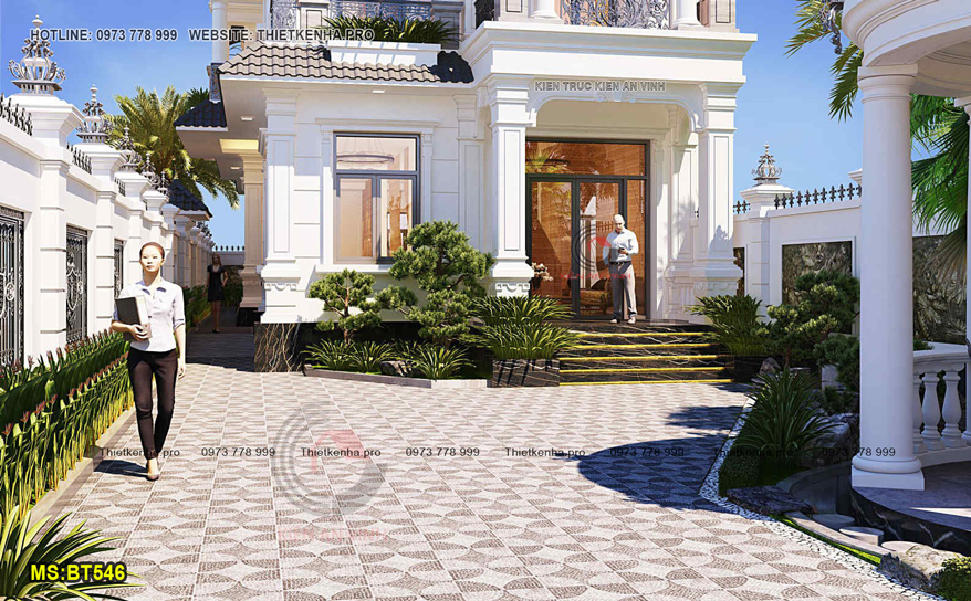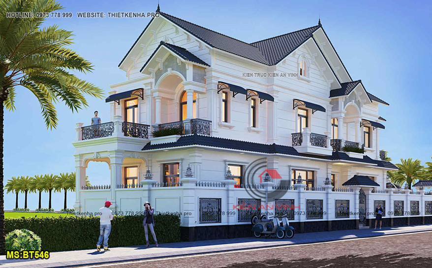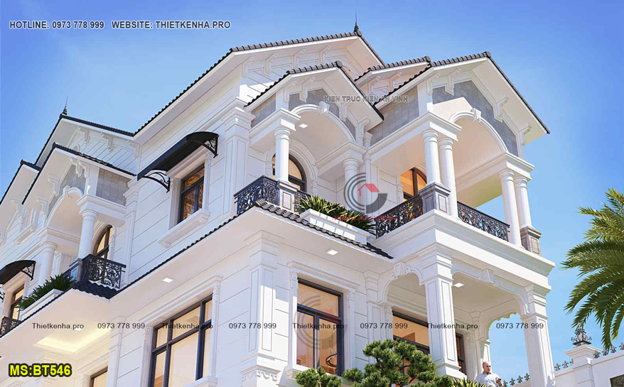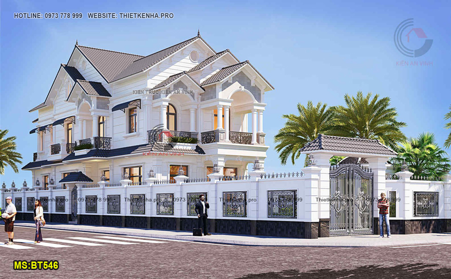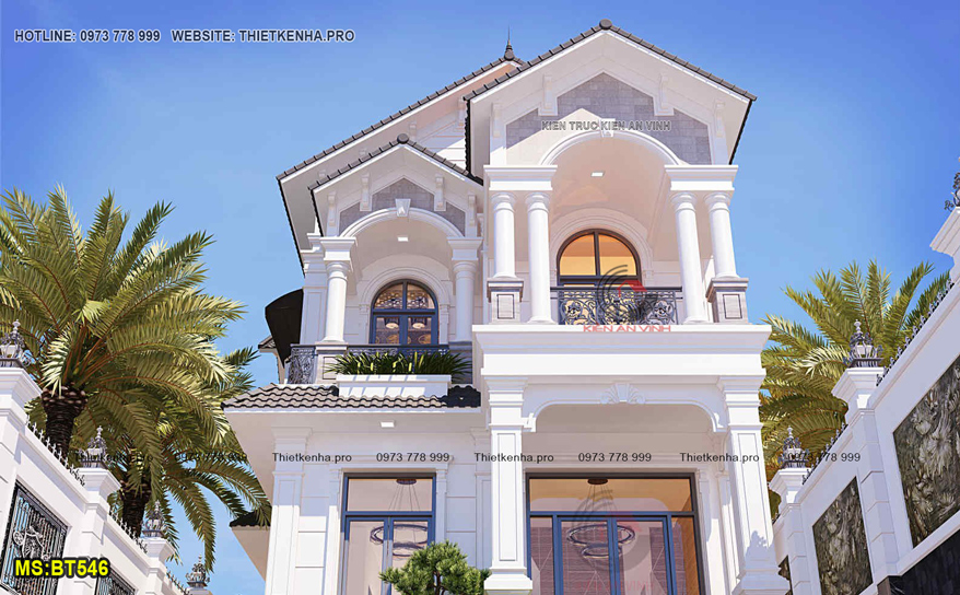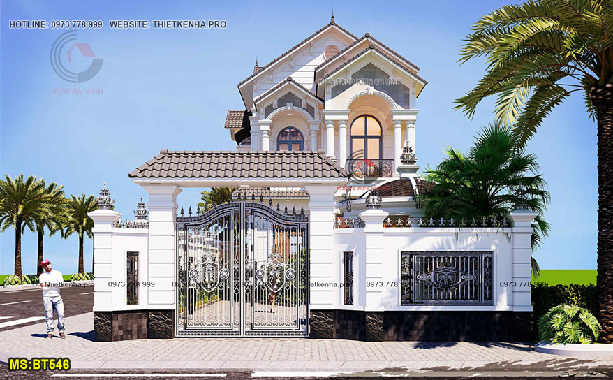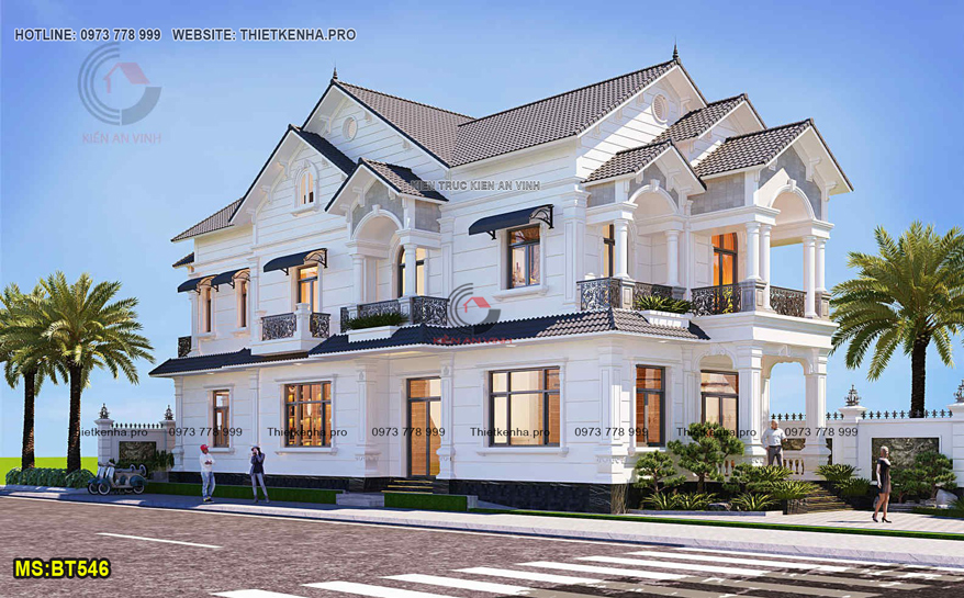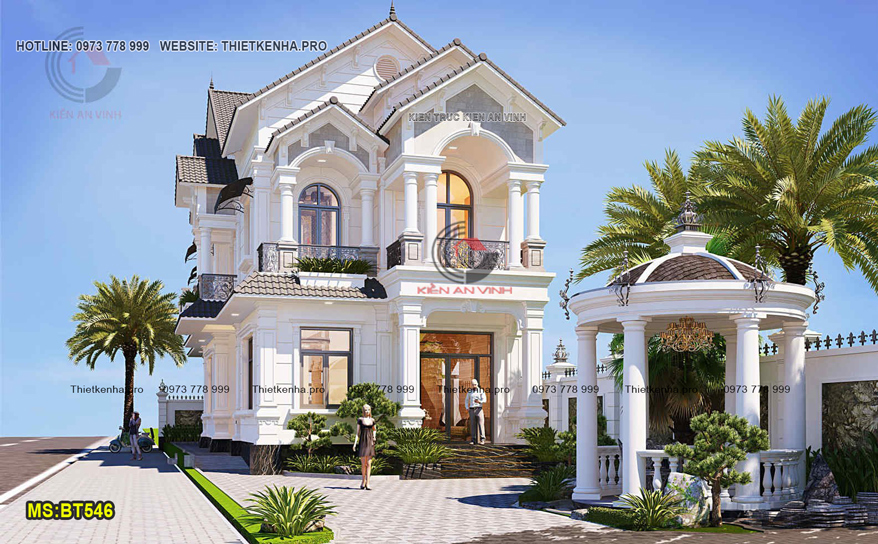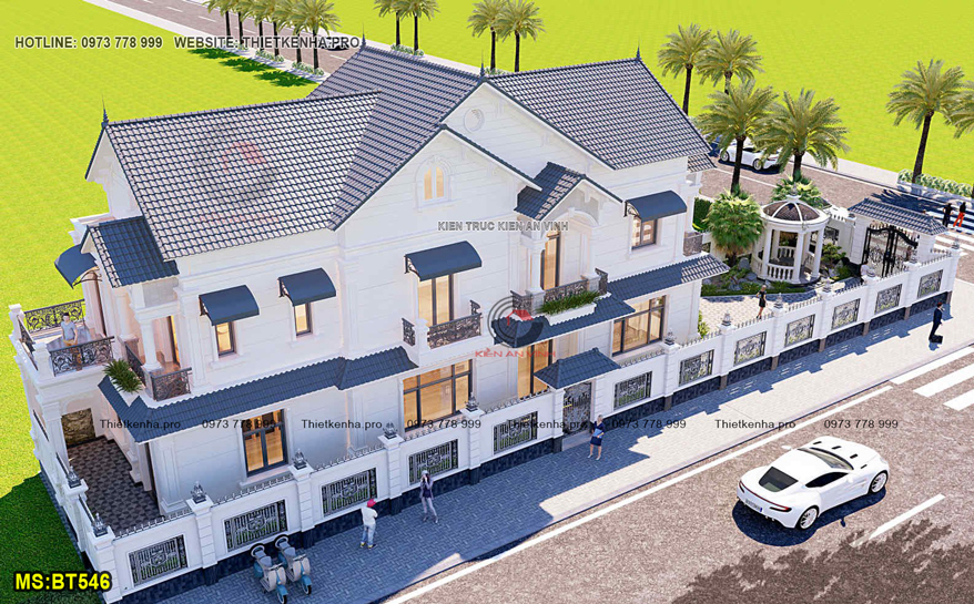 Hướng theo nét đẹp hiện đại với đầy đủ các yếu tố phục vụ cho nhu cầu sinh hoạt khiến các biệt thự kiểu này càng thêm cuốn hút. Các kiến trúc nhà biệt thự ngày nay thường hướng tới sự đơn giản nhưng phải đảm bảo chất lượng thẩm mỹ. Thì BT546 là một trong những công trình thực hiện theo sự đơn giản. BT546 thể hiện bản vẽ thiết kế biệt thự 2 tầng hiện đại mái thái đẹp. Đem đến cho người xem cái nhìn ấn tượng dù thông qua bản 3D như sau.