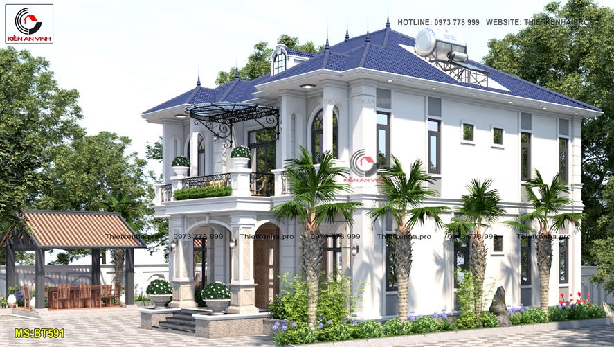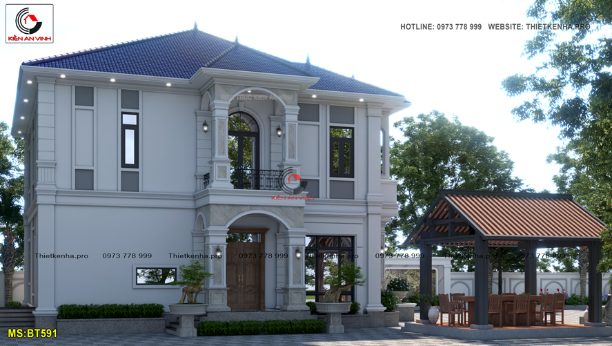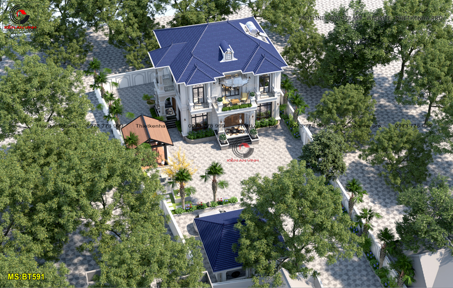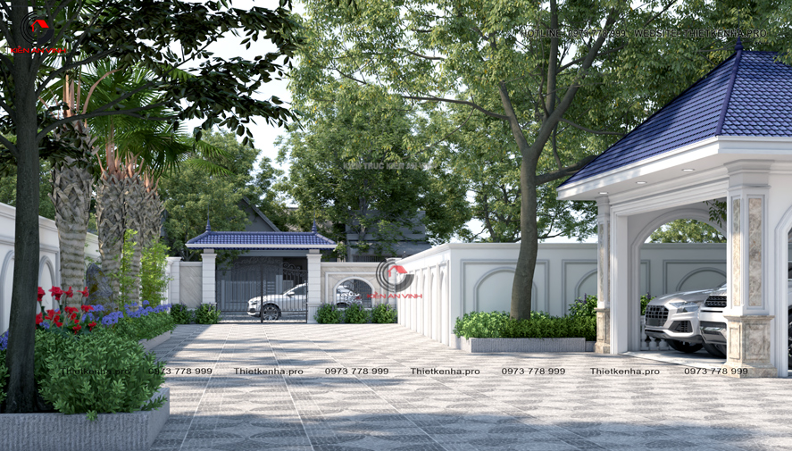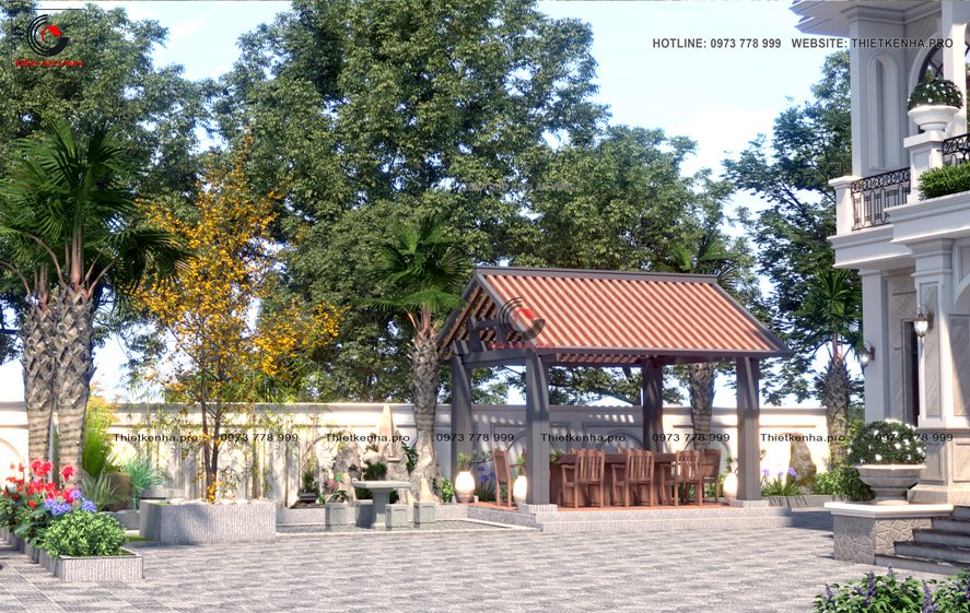 Phối cảnh thiết kế biệt thự 2 tầng mái nhật 12mx12m bắt mắt