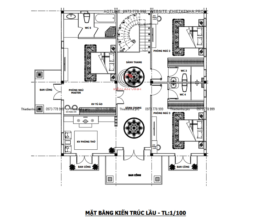 Kiểu hình vòm được bố trí cho những khung cửa trên tầng 2, betong ôm trọn phần cửa. Giúp cho kiến trúc có thể sở hữu thêm được nét đẹp cổ điển. Các ban công được bố trí ở mỗi mặt tiền, tương ứng với một không gian phòng của các thành viên. Tại đây có thể thư giản với không gian riêng tư. Kiến trúc mang thiết kế thời thượng với nét đẹp đơn giản nên được khá nhiều người tìm hiểu.